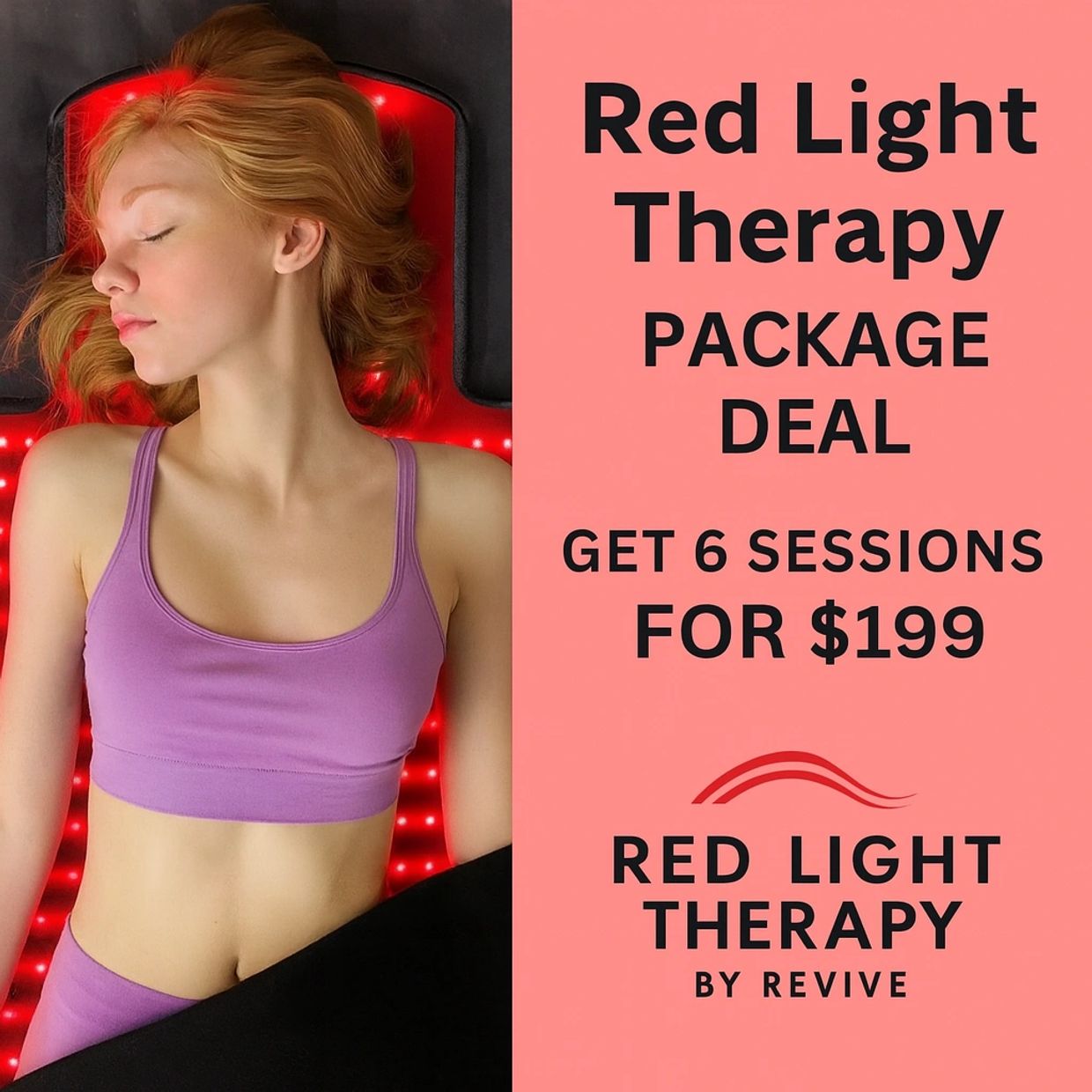 At Revive Performance Massage, our 30-minute red light therapy session is designed to deliver full-body rejuvenation in a short, effective timeframe. You’ll lie comfortably on our premium infrared mat, which uses over 2,500 advanced LED lights to target your entire body — including head, neck, back, and limbs.